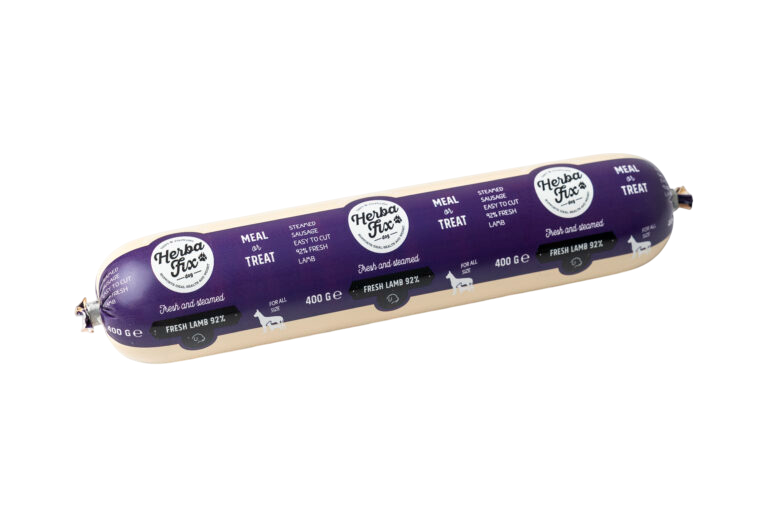 92% Lam “Meal or Treat” gestoomde worst, makkelijk te bewaren op kamertemperatuur!